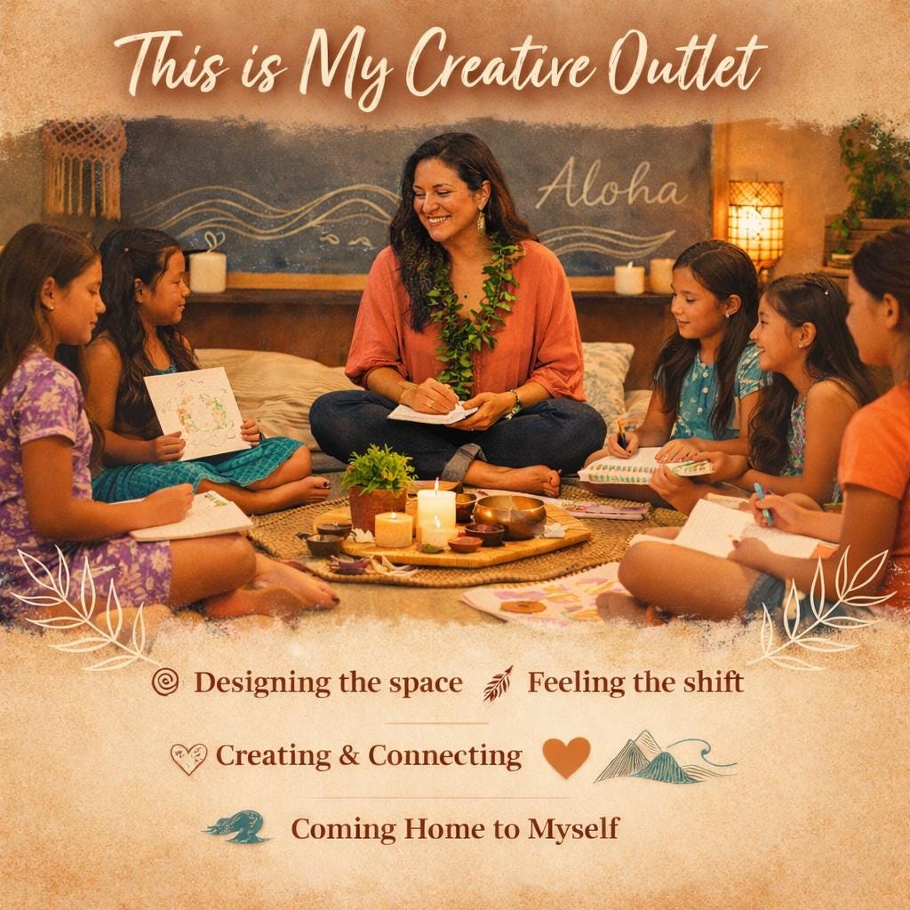 A few things the Collective is creating right now: Melinda Lloyd spent a day leading mindfulness sessions with twelve young women, weaving Native Hawaiian values — aloha as presence, ha as breath — into breath work and a simple art activity. She called it a reconnection with the part of herself that knows how to hold space without forcing anything.