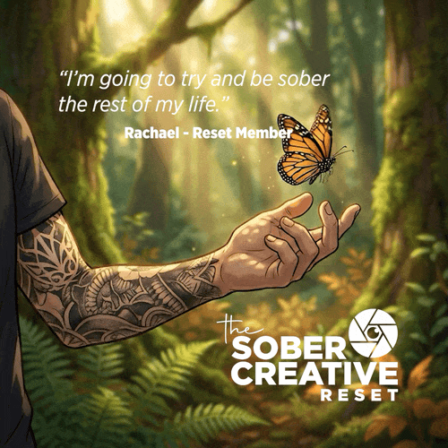 The Sober Creative Reset is 30 days of that kind of attention — daily reflections, weekly group calls, and a small private community of people who are ready to slow down and notice what’s been growing underneath the noise. No pressure. No lectures. Just mornings that invite something from you, and a warm container that holds you while you explore.